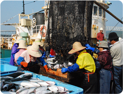 大漁に賑わう境港の水揚げ風景