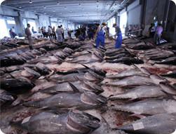 マグロのセリで活気づく境港卸売市場